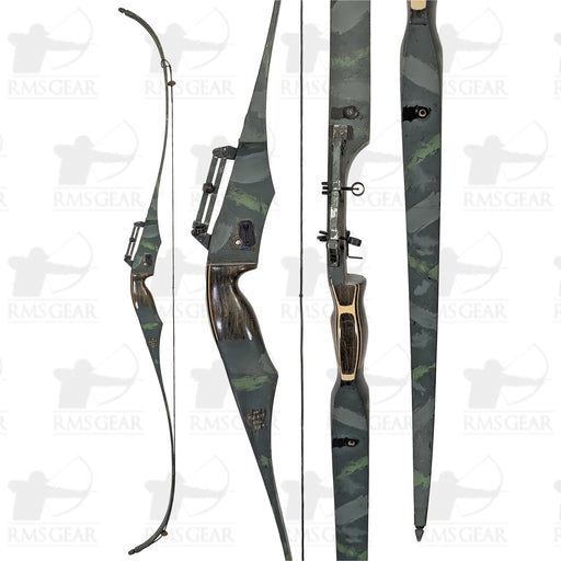 StumboUSED - Right handed. Three piece recurve. Comes with extra set of limbs - 69@30, 58". 62# Limbs are painted with camo. Some scratches and dings...
